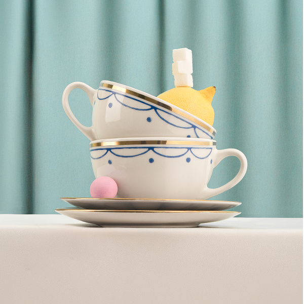 горнятко – 250 мл, блюдце – 16,5 см, виготовлено майстрами вручну, порцеляна, малюнок нанесений технікою деколь, з позолотою.